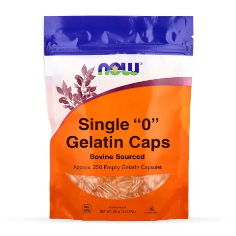'0' Empty Gelatin Capsules from Now Foods are a product made of empty bovine gelatin capsules.