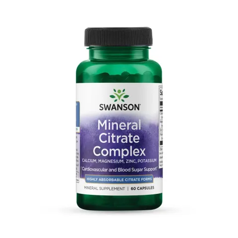 Mineral Citrate Complex by Swanson is a dietary supplement in capsules based on essential minerals such as Calcium, Magnesium, Zinc and Potassium.